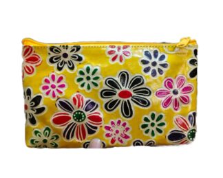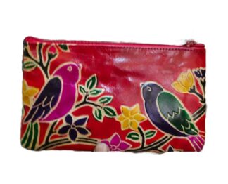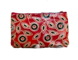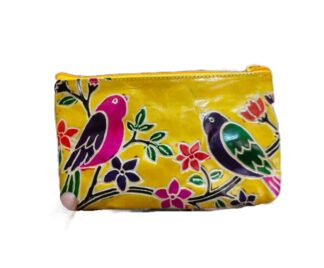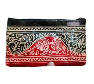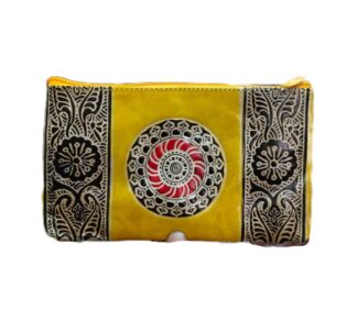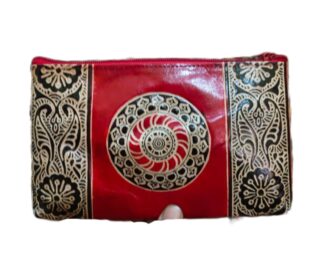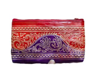 1526E. Shantiniketan Leather Hand Batik Pouch, Ethnic Look, Handcrafted. Size 8″X5″X3″