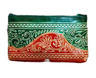 1526G. Shantiniketan Leather Hand Batik Pouch, Ethnic Look, Handcrafted. Size 8″X5″X3″