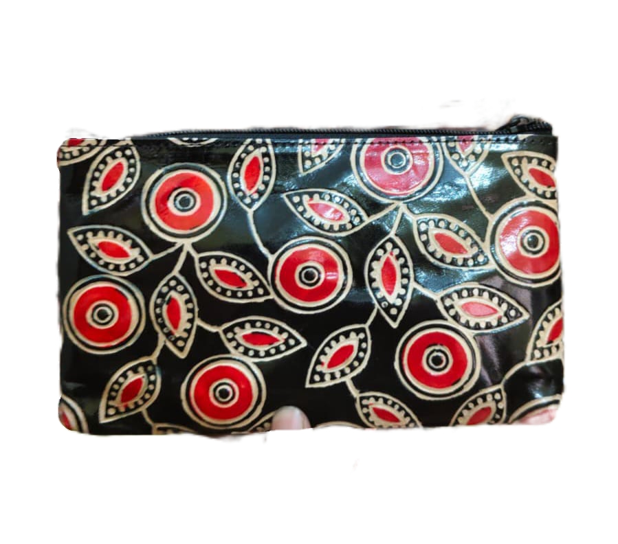 1526B. Shantiniketan Leather Hand Batik Pouch, Ethnic Look, Handcrafted. Size 8″X5″X3″