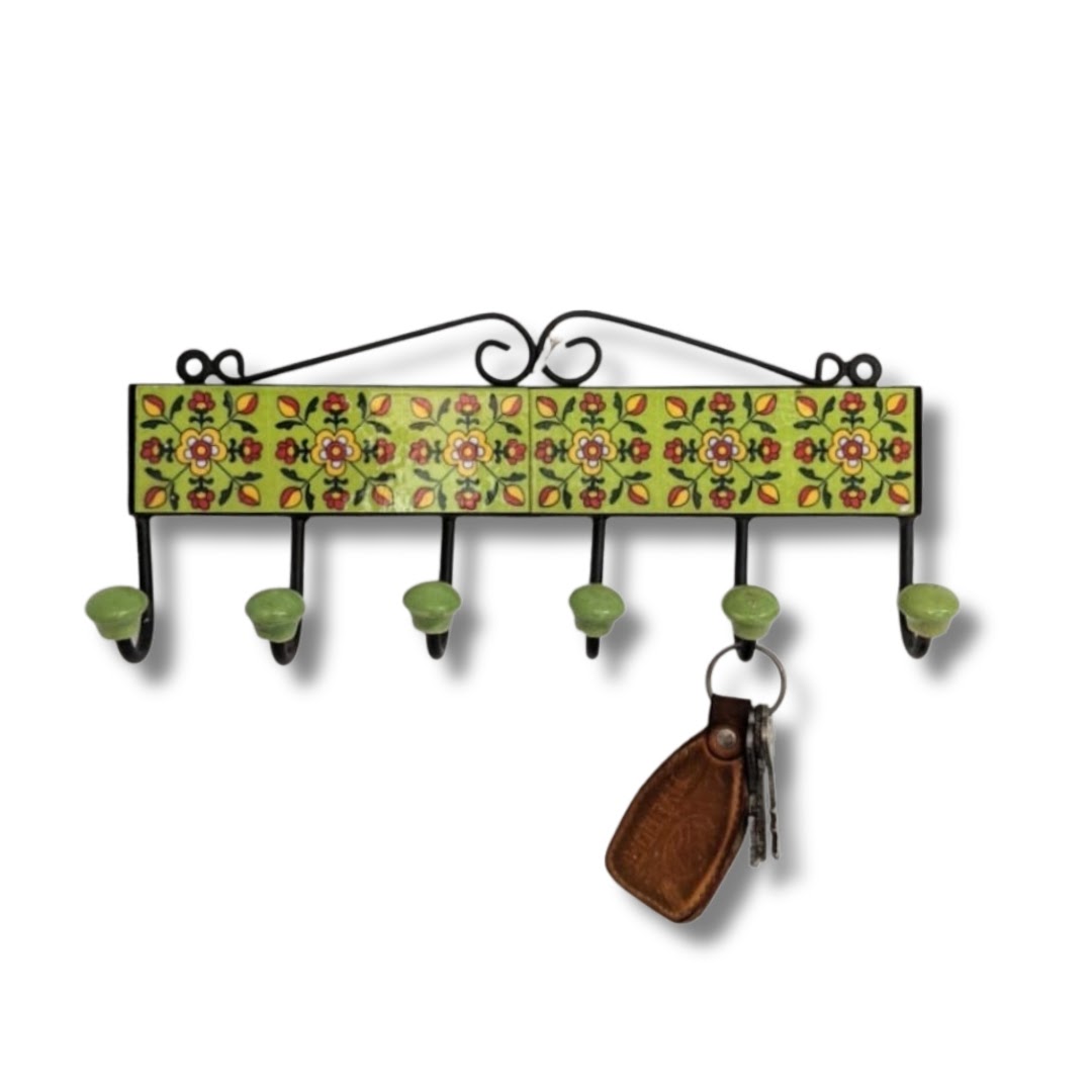 947.Sankalan Art Gallery Wall Huk to hang towel, key ring etc., Made of Iron and ceramic tile, Green, size 12″X7″