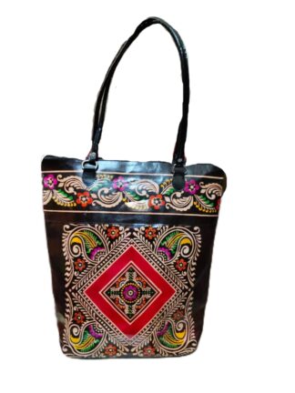 1513H. Shantiniketan Leather Tote Bag, Batic Print, Very Specious, Size 16″x16″x5″