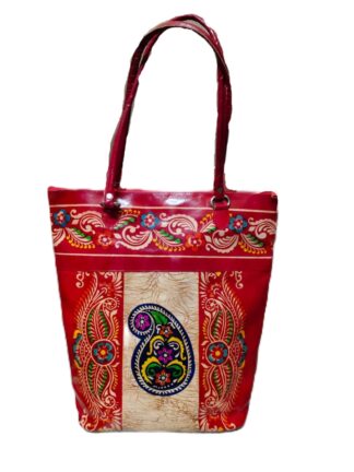 1513E. Shantiniketan Leather Tote Bag, Batic Print, Very Specious, Size 16″x16″x5″