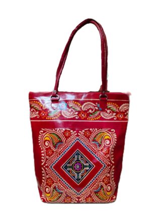 1513K. Shantiniketan Leather Tote Bag, Batic Print, Very Specious, Size 16″x16″x5″