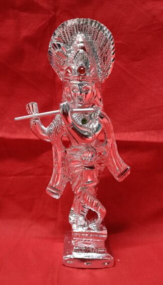 Metallic Krishna ji, Lord Krishna, Silver Colour, Table top, Home Decor, Showpiece and for Pooja purpose, Size 8″