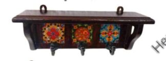 1523D. Wooden Square Chowki, Rajasthani Craft, Hand painted, gives home an antique & traditional look, useful for keeping anything, Size 15″