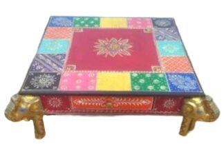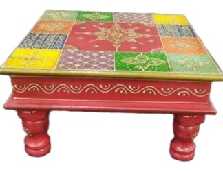 1523E. Wooden Square Chowki, Rajasthani Craft, Hand painted, gives home an antique & traditional look, useful for keeping anything, Size 18″