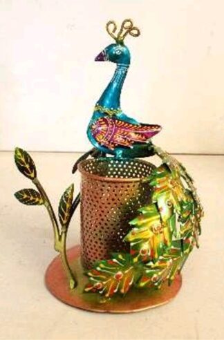 1524D. Iron Peacock pen stand, Rajasthan handicraft, good for self use or gifting, Size 9″