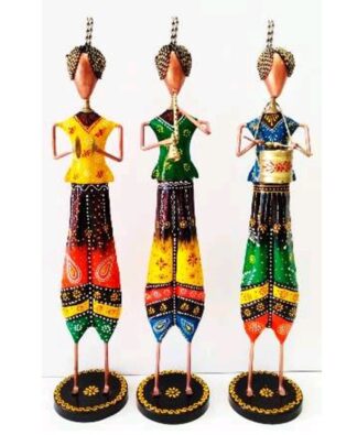 1524E. Iron Painted Standing curly musician women, set of 3, Showpiece, Rajasthan handicraft, good for self use or gifting, Size 4″x4″x21″