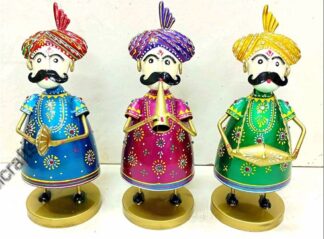 1524F. Iron Painted Raja Musician, set of 3, Rajasthan handicraft, Showpiece, good for self use or gifting, Size 4.5″x5.5″x11″